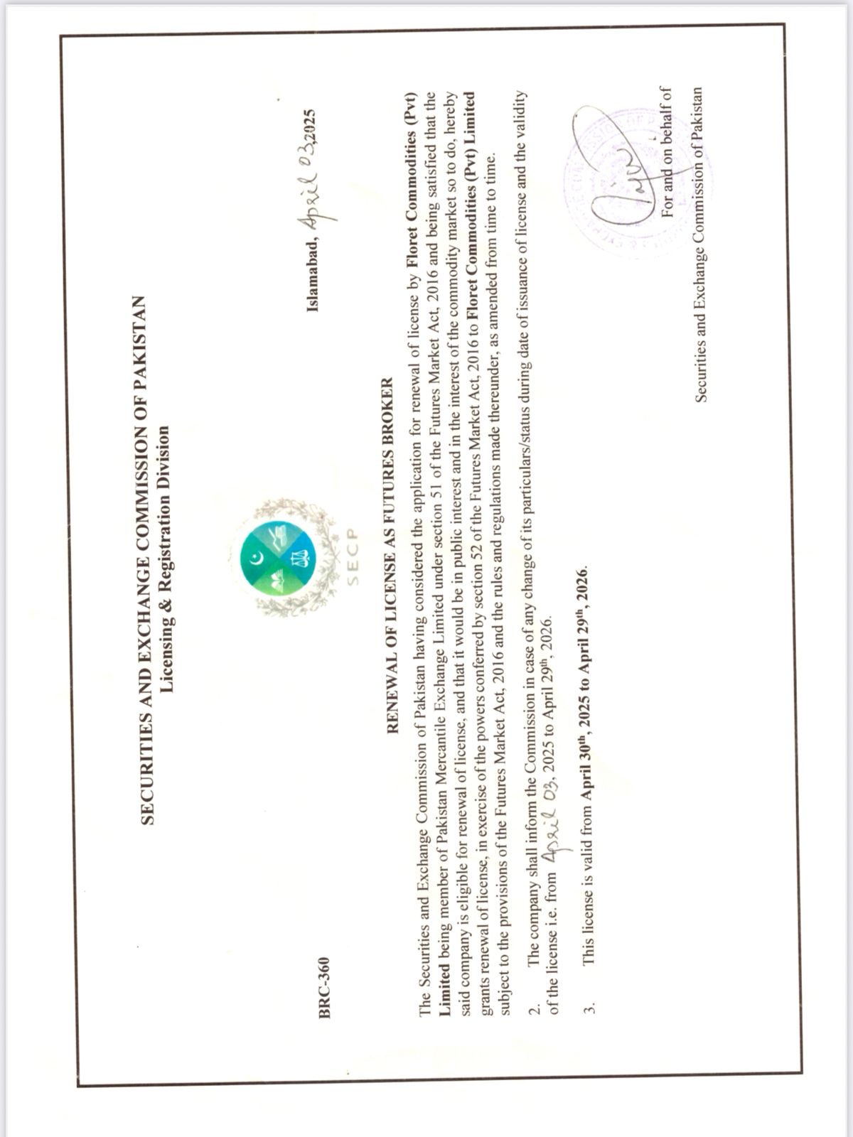 Important Documents Account Opening How to open an account Documents required for account opening Floret Commission Slab Deposit / Withdrawal Manual How to open an account Documents required for account opening Deposit / Withdrawal Manual Floret Commission Slab Miscellaneous Risk Disclosure DOs and DONTs Trading Guide PMEX & SECP Certificates SECP License Brokerage House Terms & Conditions Renewal of license 2024-2025 Renewal of license 2025-2026 Risk Disclosure DOs and DONTs Trading Guide PMEX & SECP Certificates SECP License Brokerage House Terms & Conditions Renewal of license 2024-2025 Renewal of license 2025-2026 Policies Code of Conduct & Business Ethics Customer Complaint KYC-CDD Internal Control Code of Conduct & Business Ethics Customer Complaint KYC-CDD Internal Control